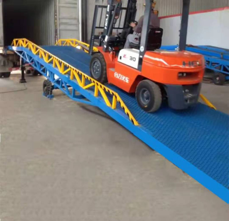 移動(dòng)式液壓登車(chē)橋是與叉車(chē)配合使用的貨物裝卸輔助設(shè)備,可根據(jù)汽車(chē)車(chē)廂的高低調(diào)節(jié)高度,叉車(chē)可以直接通過(guò)本設(shè)備駛?cè)胲?chē)廂內(nèi)部進(jìn)行貨物的批量裝卸,僅需單人作業(yè),即可實(shí)現(xiàn)貨物的快速裝卸。它使企業(yè)減少大量勞力,提高工作效率,獲取好的經(jīng)濟(jì)效益。